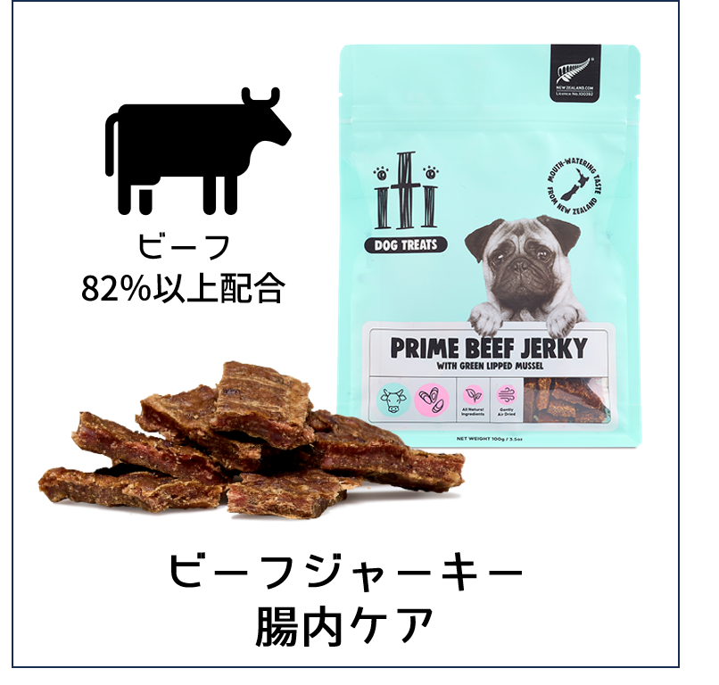 ビーフ、ブラウンシュガー、ガーリック、シーソルト、緑イ貝、アップルサイダービネガー、ナチュラルフレーバー、パプリカ、酸化防止剤:ミックストコフェロール