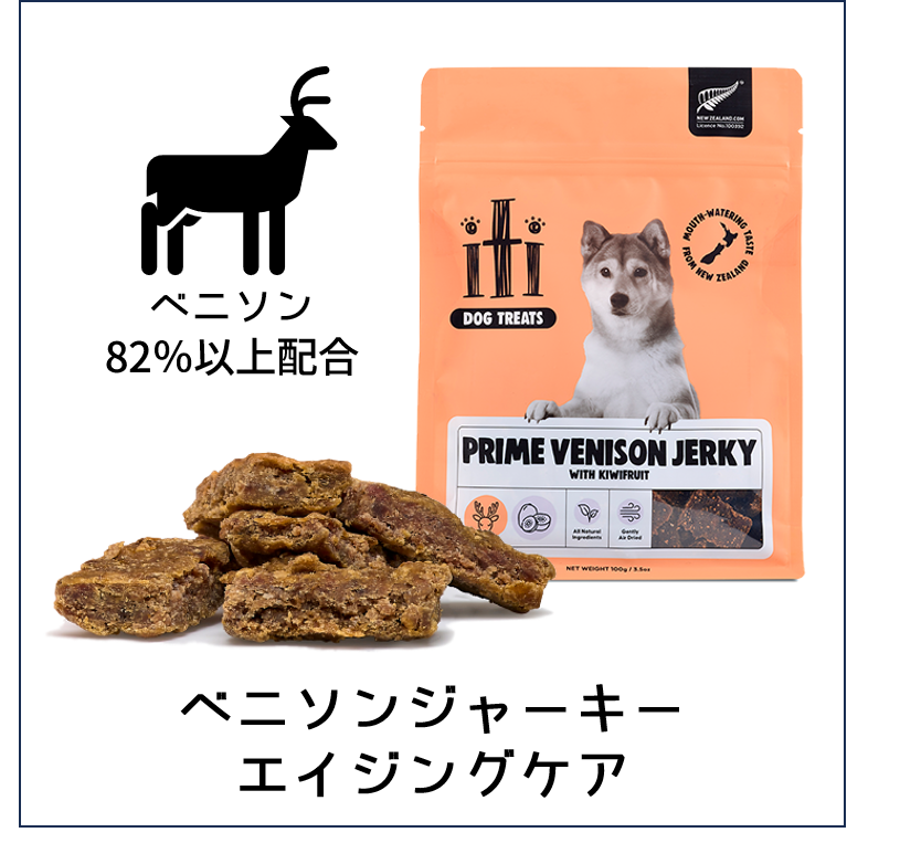 ベニソン、ベニソン内臓、ブラウンシュガー、キウイフルーツ、シーソルト、ナチュラルフレーバー、ガーリック、アップルサイダービネガー、酸化防止剤:ミックストコフェロール