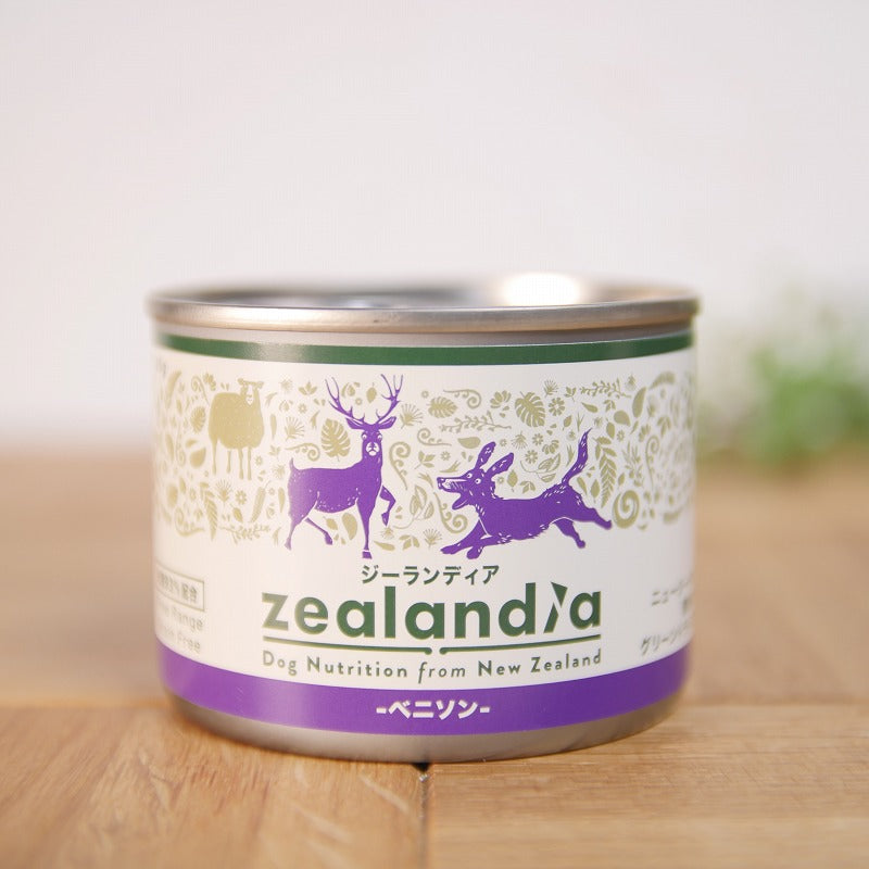 ベニソン、ラム内臓(肝臓、肺、グリーントライプ、心臓、腎臓)、緑イ貝、ドライイースト、キャロット、カシアガム、寒天、サーモンオイル、グアーガム、セレン酵母 ビタミン類:塩化コリン、ナイアシン、αトコフェロールアセタート、チアミン硝酸塩、パントテン酸カルシウム、リボフラビン、ピリドキシン塩酸塩、酢酸レチノール、ビオチン、ビタミンB12、葉酸、コレカルシフェロール ミネラル類:炭酸カルシウム、塩化カリウム、鉄タンパク質、亜鉛グリシン複合体、マンガンタンパク質、銅グリシン複合体、ヨウ素酸カルシウム アミノ酸類:タウリン